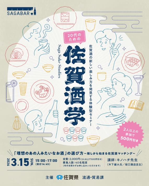 これまでの「佐賀酒学」は、飲食店などプロ向けのセミナーとして開催してきましたが、今回は20代をメインターゲットに、佐賀酒の新しい楽しみ方を発見するセミナーとして開催します。
